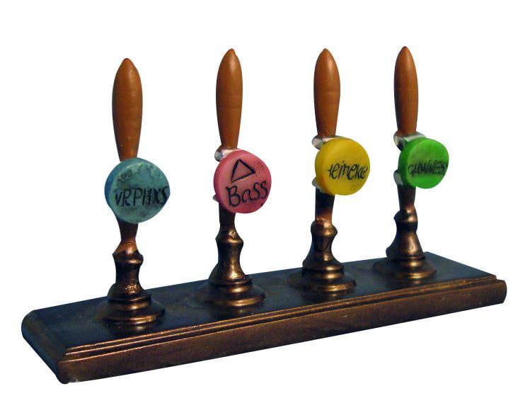 If you are looking to make your dolls house more cosy, you should try the beer pump handles from Streets Ahead. This enjoyable pump stand is great for a public house of any style or period. Crafted expertly from wood, this collectors item has four pumps with beer badges . This is a full bar's worth of ale pumps in 12th scale miniature. Have your dolls drinking and socialising! Not suited for young children: collectible item, not a toy. Recommended for ages fourteen plus. Variations are natural, pictures are for illustrative purposes.