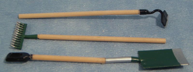 <p>Ideal accessory for Dolls House, a nice collection of green trimmed garden tools for your Fairy Garden</p>
