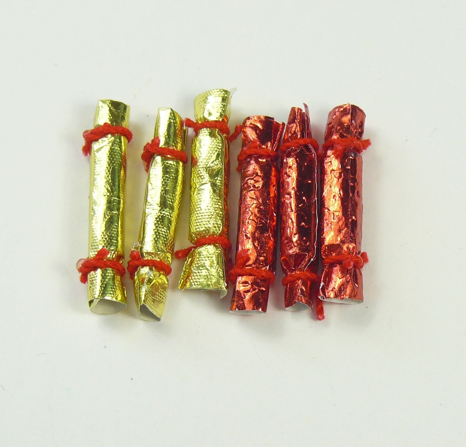 Merry Christmas! Get into the party spirit with the pack of six Christmas crackers from Dolls House Emporium. A homely seasonal must-have, regardless of your dolls house dining room style. Give yourself a gift with this red and gold foil Christmas accessory. May contain small parts.