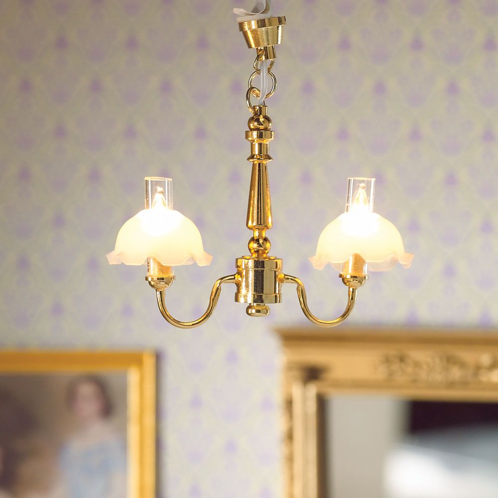 <p>Includes wire, plug & replaceable bulbs. Versatile lamp that would look lovely in your dolls house living room, dining room or even office/ study.<br /><br />All of our dolls house lights come with approx 18in (450mm) of wire and a removable fitted 2-pin plug which can be plugged into a fused socket connector strip and replaceable dolls house bulb(s). See our dolls house wiring components.<strong><br /><br />WARNING: When connecting dolls house lighting, always use a suitable 12V dolls house lighting transformer; do not connect directly to the mains supply. Not for use by children under 14 years of age.</strong></p>