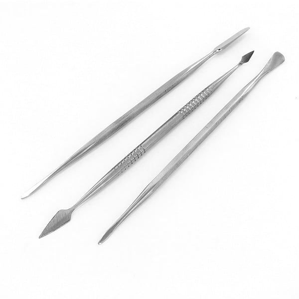A selection of 3 double ended quality carvers in storage wallet. These precision tools allow controlled carving, shaping & forming work on models prior to casting. The 6 head profiles are also particularly useful when applying, spreading & smoothing materials such as clay, modelling compounds, putty, epoxy and wood filler.