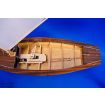 Bella is a dream-boat, featuring a great deal of genuine mahogany timber. The boat is of proven hard-chine construction, assembled on a Depron jig plate using a method introduced by aero-naut with the Classic boat. Construction is so simple that even beginners to building can successfully produce a good-looking model. The detachable roof provides good access to the RC system components and the generous space inside the cabin. The cockpit insert takes the form of a watertight shell, and if necessary the entire insert can be removed by undoing a single screw: the hull is then open over the full length from mast to stern.
