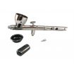 FEATURES: • Single needle/nozzle for spraying all mediums including inks, dyes, watercolors, properly reduced acrylics, enamels, lacquers, and airbrush-ready colours including SpectraTex, Air-Opaque, Air-Tex, Modelflex, and Totally Tattoo. • Single needle/nozzle sprays pencil thin lines to 3” (76mm) spray pattern • Minimal spare parts • Easy cleaning and maintenance • Patented handle design produces the fastest needle release on the market • Finger tight assembly tolerances • Excellent for multiple applications, for novice to advanced airbrush users • Lifetime warranty on labour and PTFE seals