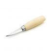 This quality Scandinavian pattern Sloyd whittling knife features a 2.1/4 inch finely ground and polished blade made from 1095 high carbon tool steel which is hardened to 58-62 Hrc and a handle from selected beech with a steel ferrule.
