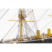 The model is a beautiful double-planked “plank-on-frame” lasercut wooden ship, with brass canons, wooden blocks, bras etching and a beautiful cast figurehead. The model is a replica of the actual ship in Portsmouth.