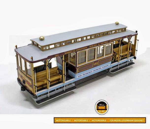 Hobbies are pleased to offer OcCre's impressive 1/24 scale San Francisco cable car wood and metal model kit, which contains all the parts necessary for you to create an accurate replica. The models' dimensions: length: 395mm x width: 107mm x height: 160mm