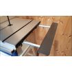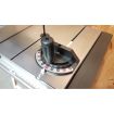 The quick release fence locks securely onto the front rail of the table to provide a rigid straight guide for ripping. A magnifier is included to aid accurate setting of the fence along the scale, marked out in mm. The fence can be fitted on either side of the blade.