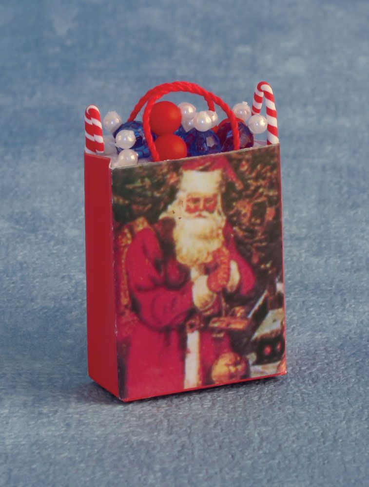 <p>Miniature Christmas bag with Santa Claus on the front. Contains various beads that could be used as a gift or could be seen as a Christmas decoration storage. Perfect for adding to your dolls house this festive season.</p>