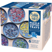 Empty your bag of puzzle pieces into Cobble Hills unique sorter and sift, sift, sift away to remove any excess puzzle dust. Then, start sorting your pieces by colour, shape, or border to aid in assembly. When you need to take a break, simply stack the sorting trays neatly together. They’ll be waiting for you when you’re ready to get going again!