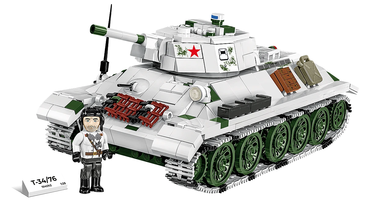<p>The T-34 tank is one of the most important tanks in history. It was developed by the Soviet Union in the interwar period and played a key role during World War II.<br />The block model from COBI is durable and perfectly reflects the dimensions and shapes of its historical inspiration. In addition, the tank has working tracks. The turret and barrel are also movable. After removing the turret, you can look inside the vehicle. Under the service hatch, you can place a block model of the engine. The model has durable prints imitating equipment details and markings (Soviet and Polish to choose from).<br /><br />The T-34/76 tank, also known simply as the T-34, was one of the most important tanks in history and played a key role during World War II. In the 1930s, Soviet engineers began work on a new medium tank to replace the older T-26 and BT-7 models. In 1939, prototypes were created, designated as A-20 and A-32. The final model, the A-34, became the basis for mass production and was named the T-34. T-34 prototypes underwent intensive testing, and in 1940, mass production began in Kharkov. The first models had a 76.2mm L-11 cannon, which was quickly replaced by the more effective F-34 cannon. The T-34 first saw combat during the German invasion of the Soviet Union in June 1941. Despite initial logistical and training problems, the T-34 proved to be extremely effective on the battlefield. Its sloped armour, good mobility and powerful armament made it an opponent that German tanks had serious problems with. T-34 tanks also found a place in the 1st Warsaw Tank Regiment, which was part of the 1st Tadeusz Kościuszko Infantry Division. T-34 tanks with a white eagle painted on their turret fought, among other battles, at Lenino and the Warka-Magnuszewski bridgehead.</p>