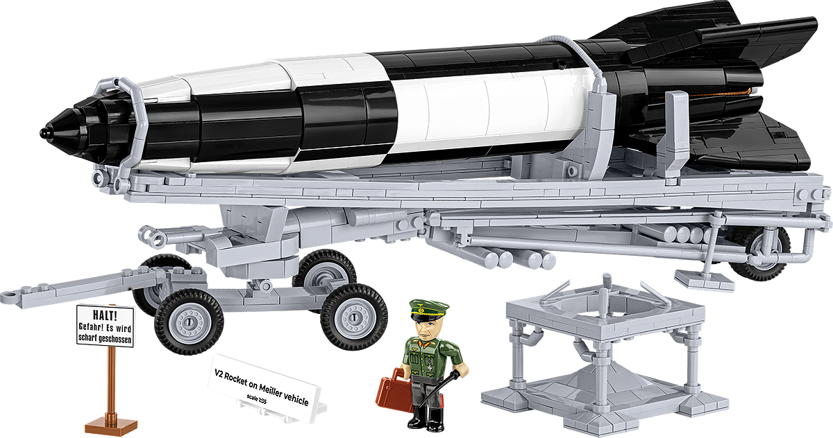 <p>The V2 rocket is one of the most famous so-called wonder weapons (German “Wunderwaffe”), which were supposed to turn the tide of war. This construction still fascinates many history and World War II enthusiasts. This legendary design was so requested that COBI could not resist the ever-increasing questions about this set. Here is the legendary V2 rocket in 1:35 scale in an Executive Edition version, enriched with additional blocks. The rocket itself has a removable casing, under which there is a reproduced interior: a powerful rocket engine, fuel tank and a warhead with an explosive charge!<br /><br />The Executive Edition set consists of 1,191 elements and includes:</p>