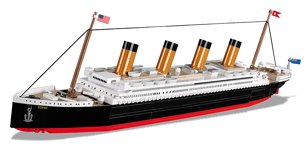 <p>During its maiden voyage, on the night of the 14th to 15th of April, 1912, on the Southampton-Cherbourg-Queenstown-New York route, the British Trans-American R.M.S Titanic ocean liner collided with an iceberg and sank. To this day the accident is one of the most famous maritime disasters of all time and still evokes strong emotions even now. The Titanic carried about 2,228 people during the ill-fated voyage. It was 268.99 meters long and 29.41 meters wide. The Titanic was a marvel of early 20th century technology.<br /><br />The ship's brick model consists of 722 COBI building blocks. When built, it is 64 cm long and 15 cm high. Numerous details create the scale of 1:450 and faithfully reproduce the shape and body of the legendary original. The set contains several moving elements. This edition is equipped with rotating wheels mounted on the flat bottom of the ship. With a little builder’s help, the ship can "swim" on flat surfaces such as the floors, carpets or tables. Thanks to this, the collector's model also becomes a toy. You can also move the cranes, screws and the rudders. The manual uses a system of simple icons and pictograms, which will easily guide you through the construction process. The Titanic brick model does not require gluing or painting. All graphics and inscriptions are printed in the form of very durable prints that do not smear or scratch or fade under the influence of sun, water or even very intense fun. No stickers were used in the model. The kit is recommended to persons over 8 years of age. It will certainly bring a lot of satisfaction to both the youngest fans of bricks as well as adult enthusiasts of history and nautical engineering. The R.M.S Titanic model is sure to look spectacular both on the collector's desk and in every teenager's or child's room.</p>