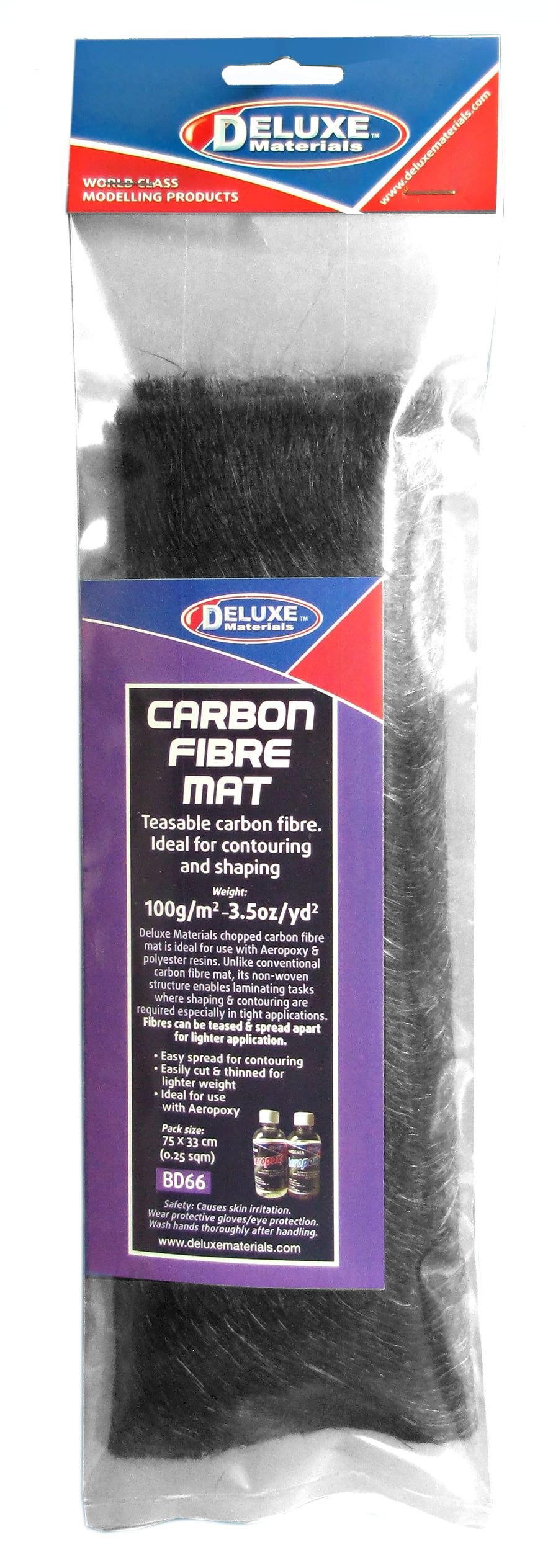 Chopped carbon fibre mat, ideal for use with epoxy resins such as Aeropoxy. Unlike conventional carbon fibre mat, its non-woven structure enables laminating tasks where shaping & contouring are required especially in tight applications.