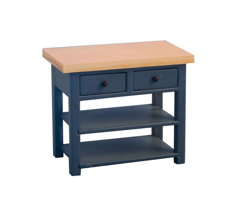1/12th Scale Dolls House Shaker Style Butchers Block Blue Pine, part of the new shaker style range perfect for a modern kitchen in your dolls house.