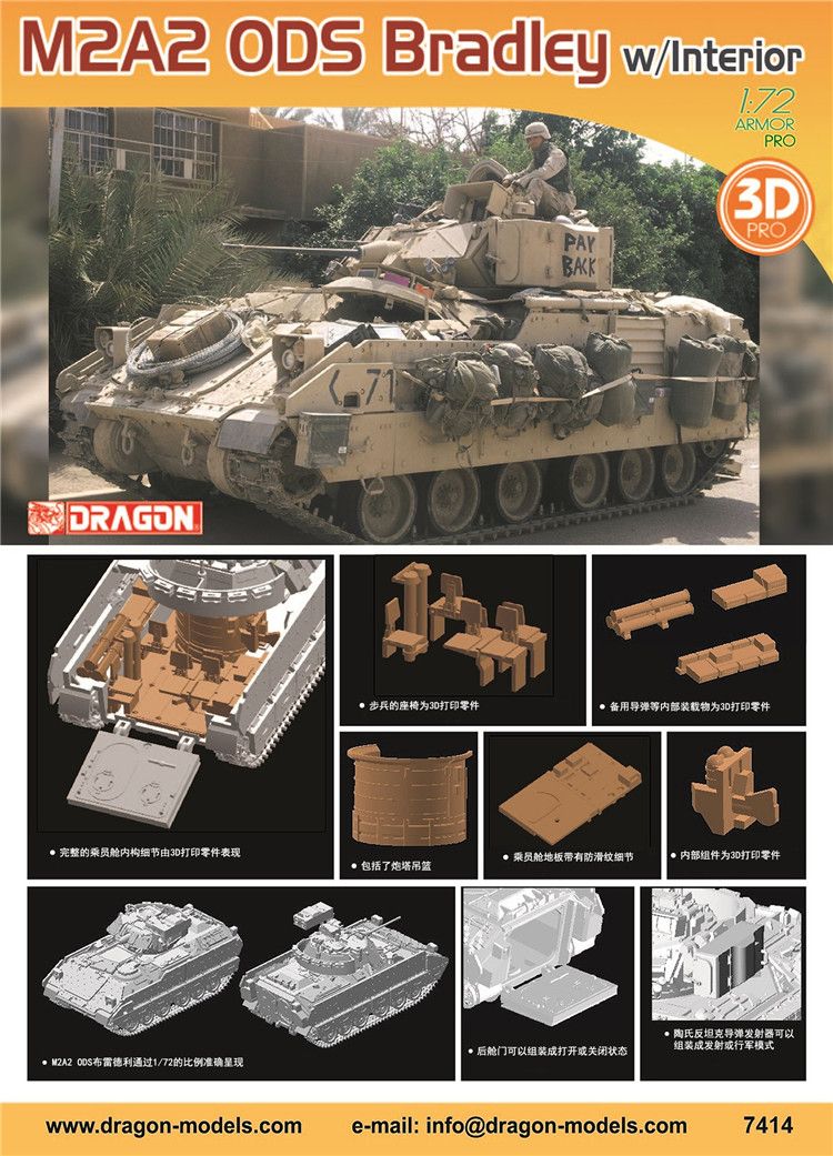Dragon 1/72 Scale M2A2 ODS Bradley with Interior Model Kit