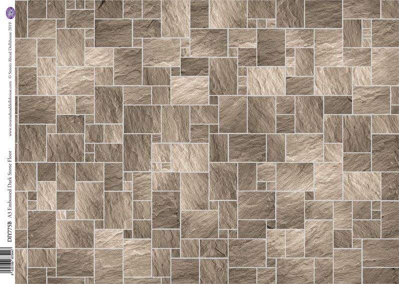 Embossed Dark Stone Floor Tiles Card for 12th Scale Dolls House