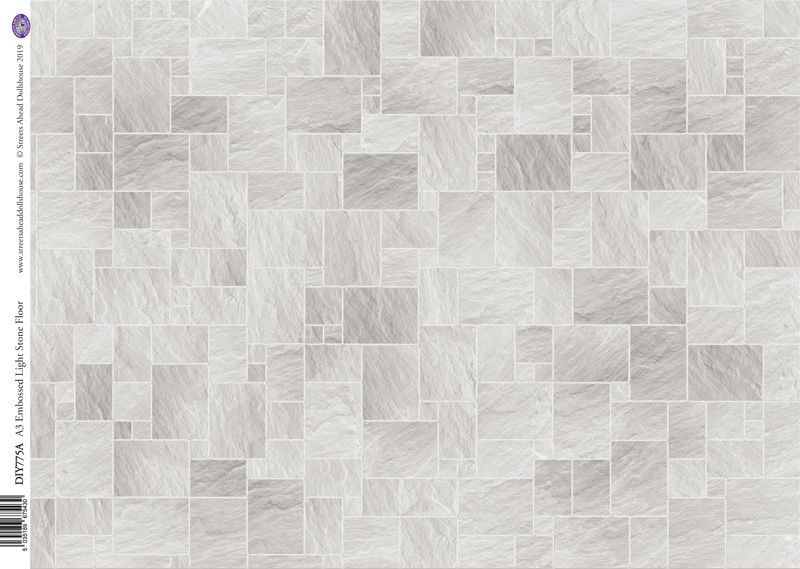 Embossed Light Stone Floor Tiles Card for 12th Scale Dolls House