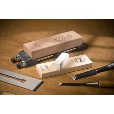 There is no better kit for someone sharpening with waterstones for the first time. The kit contains a 200mm(8") by 62mm(2.1/2") 800 grit stone for initial grinding, a 175mm(7") by 62mm(2.1/2") 6,000 grit fine finishing stone, a non-skid waterstone holder and a Nagura stone for cleaning off the glazed surface of the fine stone. All you need to get started.