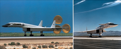 <p><span>In the Cold War era the dream of every strategist was to own a bomber with the load capacity and autonomy of the B-52, able to fly faster than the B-58, and so the B-70 programme came into being. After years on the drawing board, and cutthroat competition between Boeing and North American Aviation, the latter’s design won the heated competition in December 1957, with an order for the first 30 aircraft to be in service by 1965. In 1959, however, it became clear that the still untested B-70 would not survive the new aerial combat scene technology and the programme was cut back to a minimum. Two prototypes were finally constructed, the first of which took to the air in September 1964, and the XB-70 Valkyries showed themselves able to fly at speeds exceeding Mach 3. Today they are considered by many airplane buffs to be the most beautiful aircraft ever constructed.<br /></span></p>