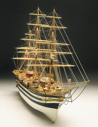 The Mantua Amerigo Vespucci is an exact scale model of the famous school ship of the Italian Navy. She was planned by lieutenant colonel Framcesco Rotundi, following the trends of war sailing vessels. She was launched in 1931 at the Navy`s ship yards of Castellammare di Staia Naples.