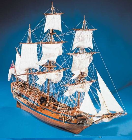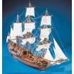 A plank on frame construction, the kit contains:- Building plans with general details, English instructions, lost wax brass castings, walnut or lime planking, wooden masts and spars, brass and walnut fittings, etched brass details, rigging cord and silk flag. All sheet ply sections are laser cut for accuracy.