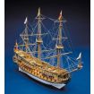 A plank on frame construction, the kit contains:- Building plans with general details, English instructions, lost wax brass castings, walnut or lime planking, wooden masts and spars, brass and walnut fittings, etched brass details, rigging cord. All sheet ply sections are laser cut for accuracy.