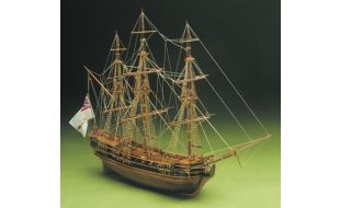 Building plans with general details, English instructions, lost wax brass castings, walnut or lime planking, wooden masts and spars, brass and walnut fittings, etched brass details, rigging cord and silk flags. All sheet ply sections are laser cut for accuracy.