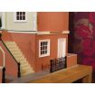 Montgomery Hall dolls house kit is a large property which incorporates many period features and details such as the hipped roof, scrolled portico and columns.  The optional basement increases the overall height of the property to almost 4ft and provides additional internal rooms.