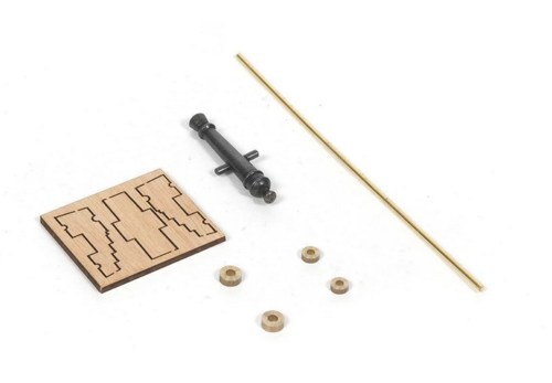 Complete gun set. Carriage in pre-cut wood ready to mount & gun made in zamak.