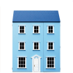 A three storey Georgian style Town House with hinged roof, attic and split front opening. Cream and Blue versions have painted exterior walls, white windows and door.
