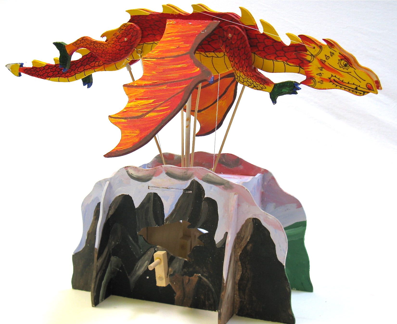 This dragon flaps its wings and kicks its legs up and down, while the head, neck & tail move in a graceful motion, just like a real dragon would.