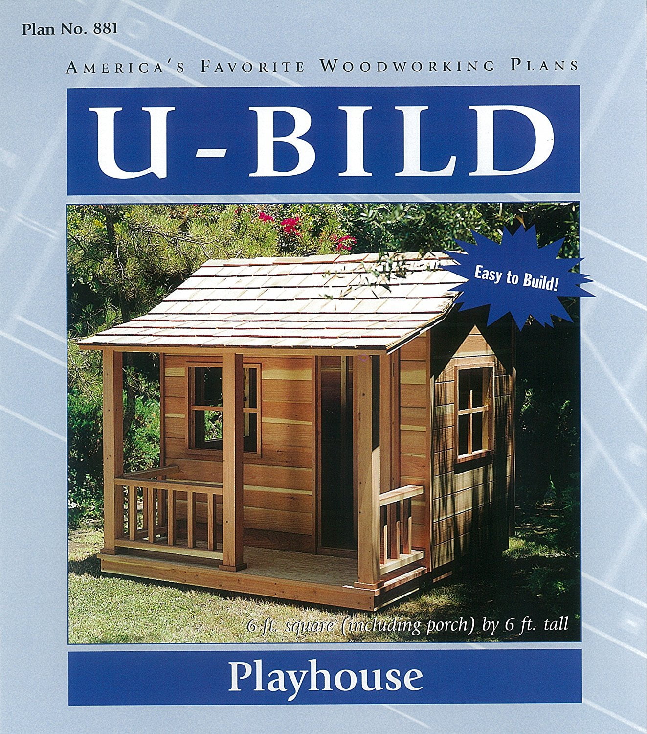 Remember building a playhouse when you were a kid? Whether you called it a "fort" or a "clubhouse" or a "hideout," the plan came from your imagination, the tools came from your dad and the lumber came from wherever you found it. During the summer or two that it lasted, you filled that ramshackle playhouse with a lifetime of memories. Now you can help your own kids (or grandkids) create a home for some memories of their own. This do-it-yourself playhouse project makes it easy-even if your woodworking skills haven't improved with age. The project is built from redwood as pictured, but pine, cedar or even plywood also work well. Step-by-step instructions, full-size patterns for the angled cuts and modular construction make it simple enough for most do-it-yourselfers. The playhouse measures six feet square (including the porch) by about six feet tall at the peak of the roof. About U-Bild plans: U-Bild plans are ideal for woodworkers and do-it-yourselfers of all skill levels. Unique "trace, saw and assemble" designs feature simple-to-follow patterns (like sewing patterns) that produce professional-looking results.