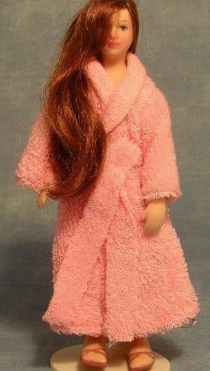 This lady in robe figurine comes from Streets Ahead. This beautifully painted doll is a perfect add in decoration to a dolls house and does not require a stand to be upright. This figurine set is inspired by classic style clothing and characters and is dressed in a full length pink bath robe.