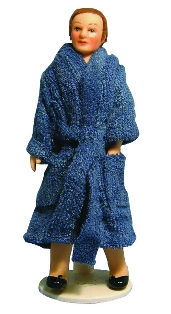 Liven up your dolls house with miniature figures - like the man in robe doll set from Streets Ahead. This dolls set is made of high quality porcalain and can be moved in to a varity of postions, giving it greater stability and realism. This doll set invokes timeless period dress, wearing a a full length navy bath robe.