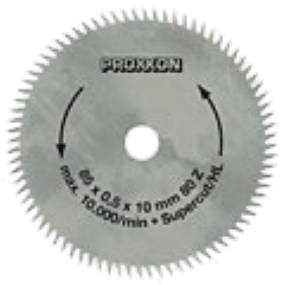 Super cut Ø 85 x 0.5 x 10mm. 80 teeth. Use on hard and soft woods, plastics.