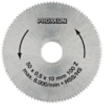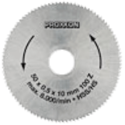 Saw blade made of high-alloy special steel (HSS) 50mm diameter (10mm bore), 0.5mm thick. Alloy holding a high proportion of tungsten, vanadium and molybdenum for an even structure, high hardness and long lifetime. Fine-toothed. For very fine cuts in non-ferrous metals (aluminium, brass, copper). Also suitable for cutting compound materials like PC cards, and sawing wood and plastics.