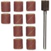 The pack contains 10 sanding drums and an arbor with a 3mm shaft.