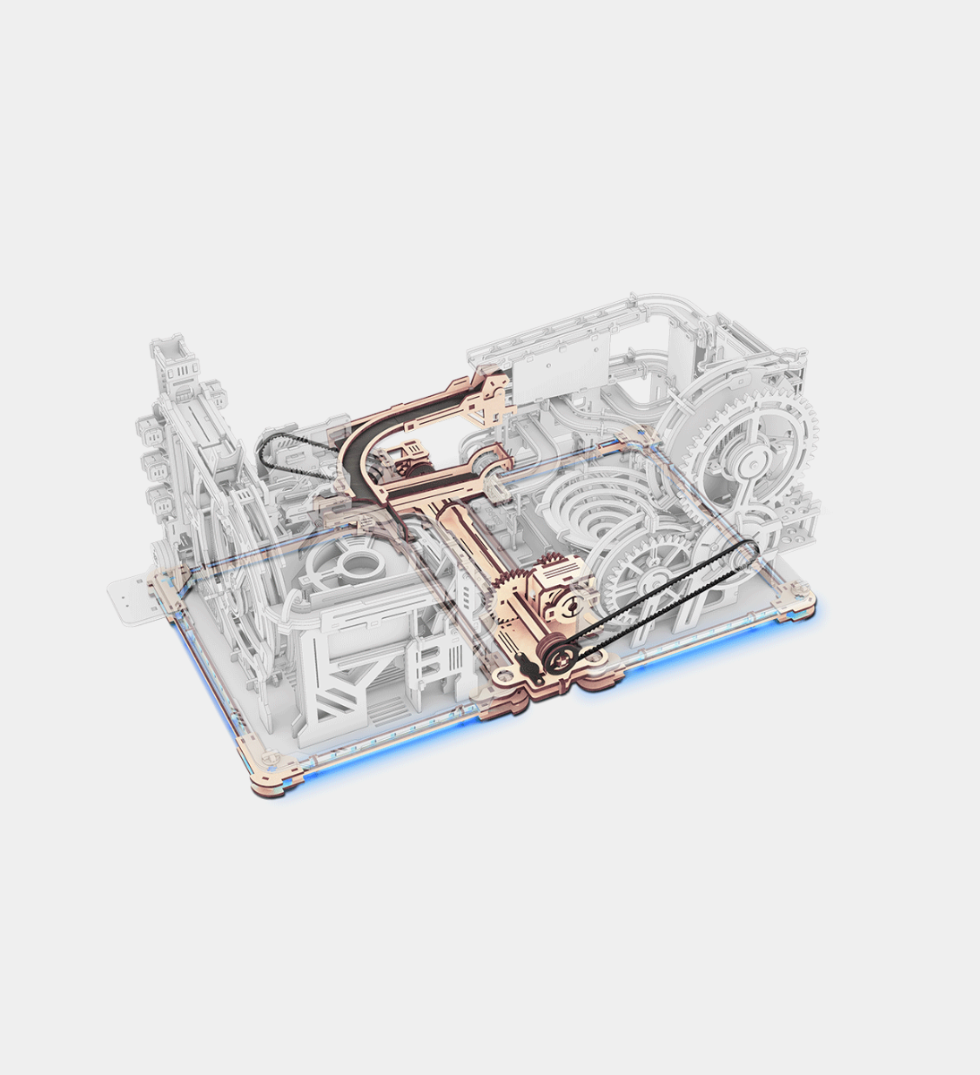 The Spaceport and The Night City can be connected using the Link Pack. Once linked, the built-in motor in Spaceport powers the entire setup automatically, while the LED light strip adds a stunning glow effect!