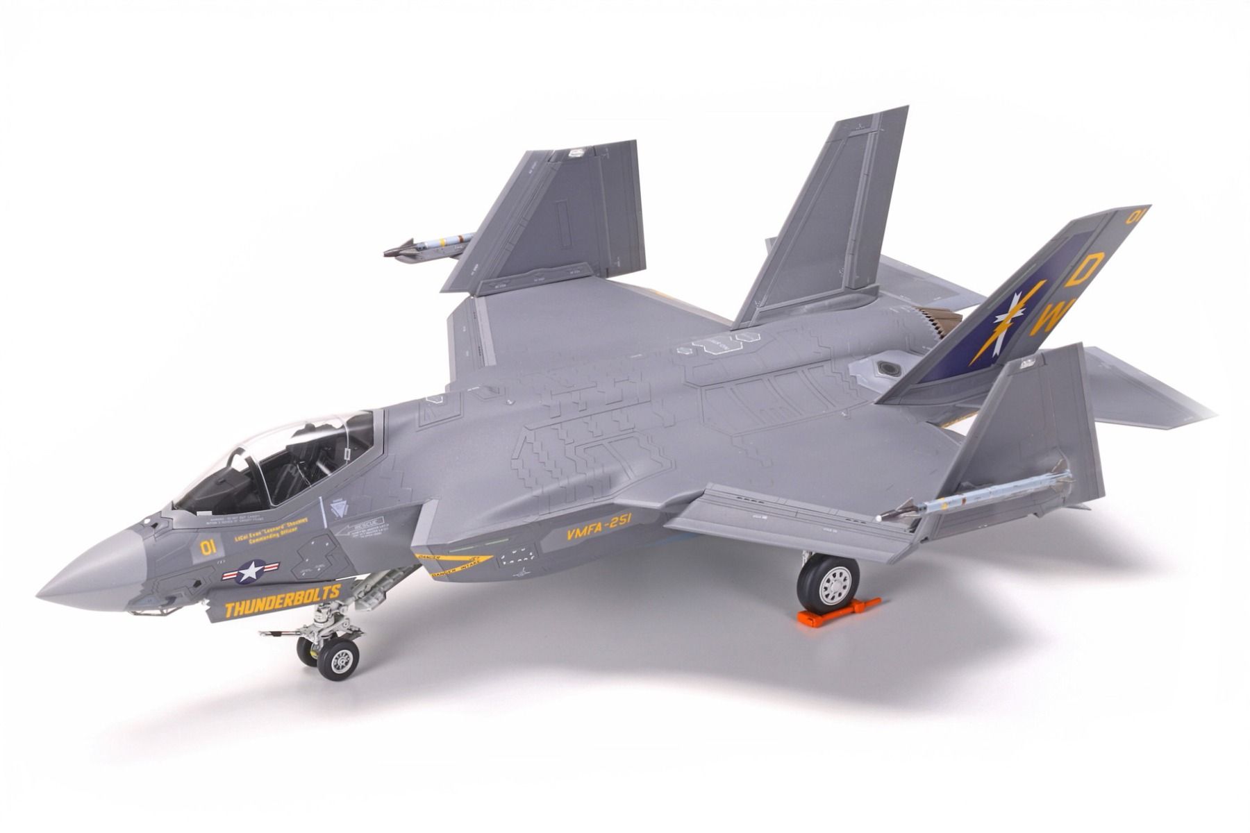 The distinctive fuselage form of the F-35C – which has larger wings and horizontal stabilisers than other F-35 variants for slower aircraft carrier landings – is captured in style