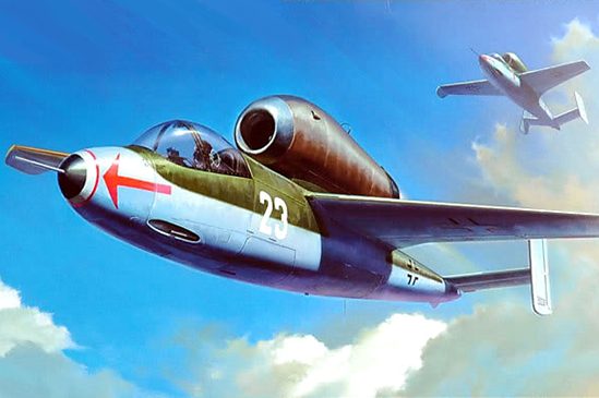 <p>As the situation became more desperate for the German forces near the end of WWII, a call was made for a new inexpensive jet fighter that would be simple to produce and fly. In the amazingly short span of 3 months from drawing board to first flight of the prototype, Heinkel produced the small, sporty-looking He162. The lightweight fighter featured mainly wooden construction and was powered by a BMW003 turbojet, which made it the fastest jet fighter of WWII with its 838km/h top speed. Reaching combat units in late March 1945, the little fighter managed to record some combat successes despite the acute fuel and parts shortage.</p>