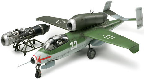 High-quality assembly kit display model of the He162 A-2 "Salamander" jet fighter