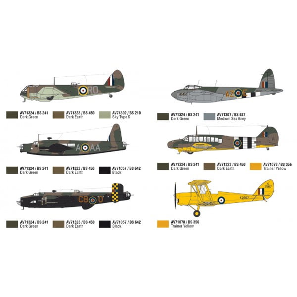 This set has been developed for painting all the bombers (light, medium and heavy) of the Bomber Air Command of the RAF from 1939 until the end of WWII. This set also includes “Trainer Yellow” which, combined with the other colours or by itself, can be used for most of the training aircraft and prototypes.