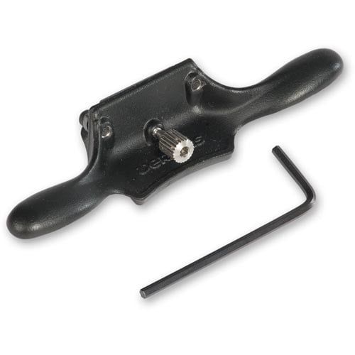 This one third scale cabinet scraper is a fully functional miniature tool. It operates in the same way as the full size original and is surprisingly effective. It measures 97mm(3.13/16") wide overall and weighs about 46g. Its small size allows fine control when smoothing surfaces.The 24mm(15/16") wide blade, made of spring steel and ground at a 45° angle, is held at a consistent depth and angle. A thumbscrew lets you camber the blade to control the amount of bite and prevents the blade corners from leaving ridges. The handle position lets you apply force directly in line with the cutting edge.Made of investment-cast steel with a stainless-steel camber screw. Supplied in a French-fitted embossed leatherette box, a great gift for any woodworker. Made in Canada.