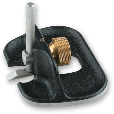 A versatile tool for fine work, particularly on narrow material or in confined areas. The sole is designed to completely encircle the blade when in the closed-throat position for maximum registration to the workpiece, even when approaching from the side or working the edge. This also allows it to bridge recesses, providing great stability even on narrow stock. The blade may be positioned inboard for standard closed-throat use, or outboard, where the cutting edge of the blade extends beyond the body, for true bullnose work. The blade-clamping knob has been positioned behind the blade to allow visibility and chip clearance. The comfortable ductile cast iron body is accurately machined and features a lapped sole. The plane is 82.5mm(3.1/4") wide and 57mm(2.1/4") deep, with a 6.35mm(1/4") wide high-carbon steel blade. Weight 200g(7oz).