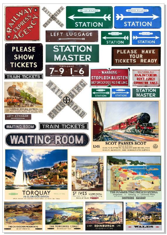 A variety of vintage train signs to suit a variety of constructions in the scale 1:43.5, 1:24 or 1:76.