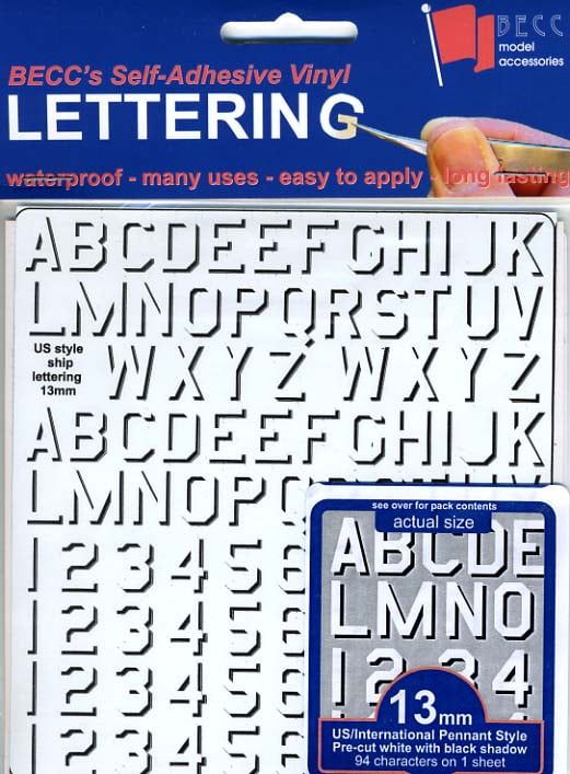 <p>These stickers are made from vinyl, waterproof for model boats, fade resistant for model planes, and durable for wear and tear.</p>Becc Flags5060438099231add-to-cartBecc FlagsVinylUnisexDecalsLettering{"name":"Klarna","text":"Pay In 30 Days","imageUrl":"https:\/\/www.hobbies.co.uk\/media\/nosto\/klarna.png"}VLPNUS132021-03-19