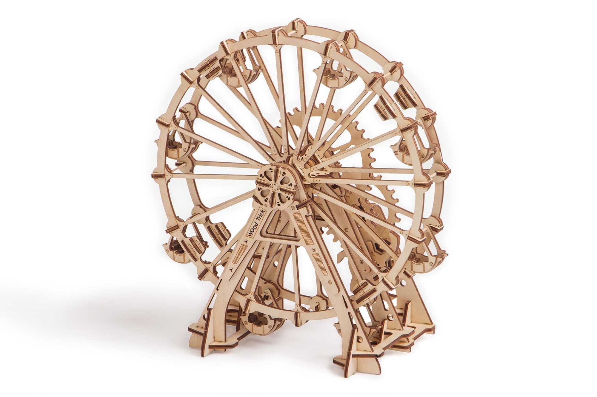 <p align="justify">This enduring carnival design is one of Wood Tricks most popular and enduring designs. It’s elegant and beautiful design has been the choice for many hobbyists and collectors for display in their homes. The authentic design which allows the wheel to actually turn, makes it a set that is sure to impress your friends once completed. The Observation Wheel is considered an intermediate difficulty set consisting of 219 pieces, but building it is still accessible for all ages. The set comes packaged with clear, simple and very detailed instruction as well as illustrations. Follow these instructions to build the set efficiently and correctly!</p>
