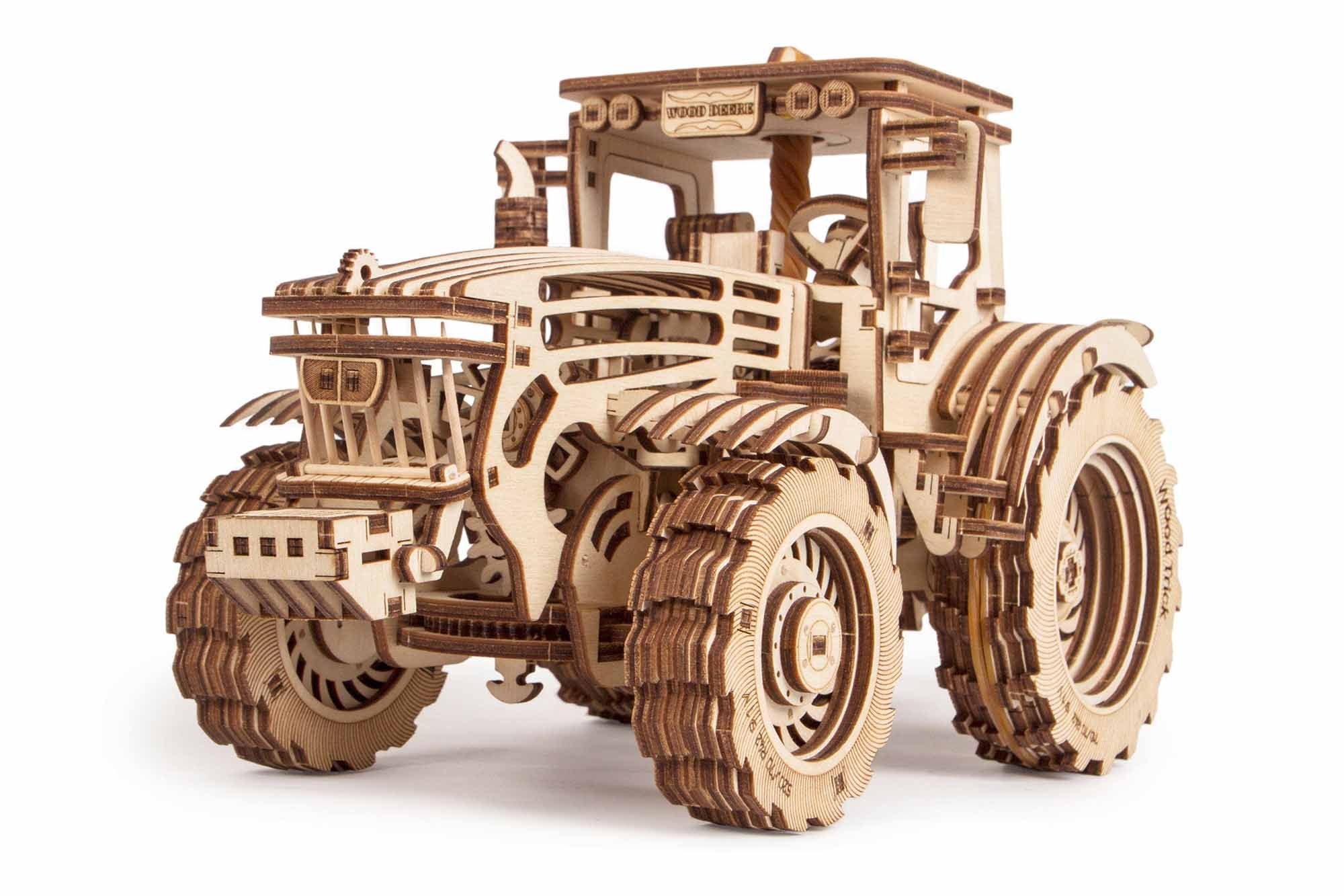 <p>Universal tilling tractor is one of the most high-performance models of Wood Trick construction sets. Engine operation is fascinating – having opened the bonnet, you can see the piston movement. Tractor may operate at neutral speed or at full speed – then you see how quickly it drives.</p>
