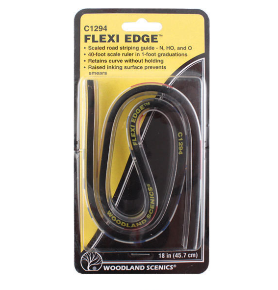 Striping roads has never been easier! Paint straight or curvy lines cleanly and confidently. Scale ruler helps you mark sidewalks, roads, parking lots and other markings on paved areas to scale accurately. Raised inking edge prevents smears. Use edge for alignment and marked guide for correct road-striping markings. Create track plans and custom templates. Retains curve without having to hold it. Flexi-Edge is 18" in length.
