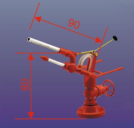 Semi-scale model of a vertically and horizontally rotating fire-fighting canon.